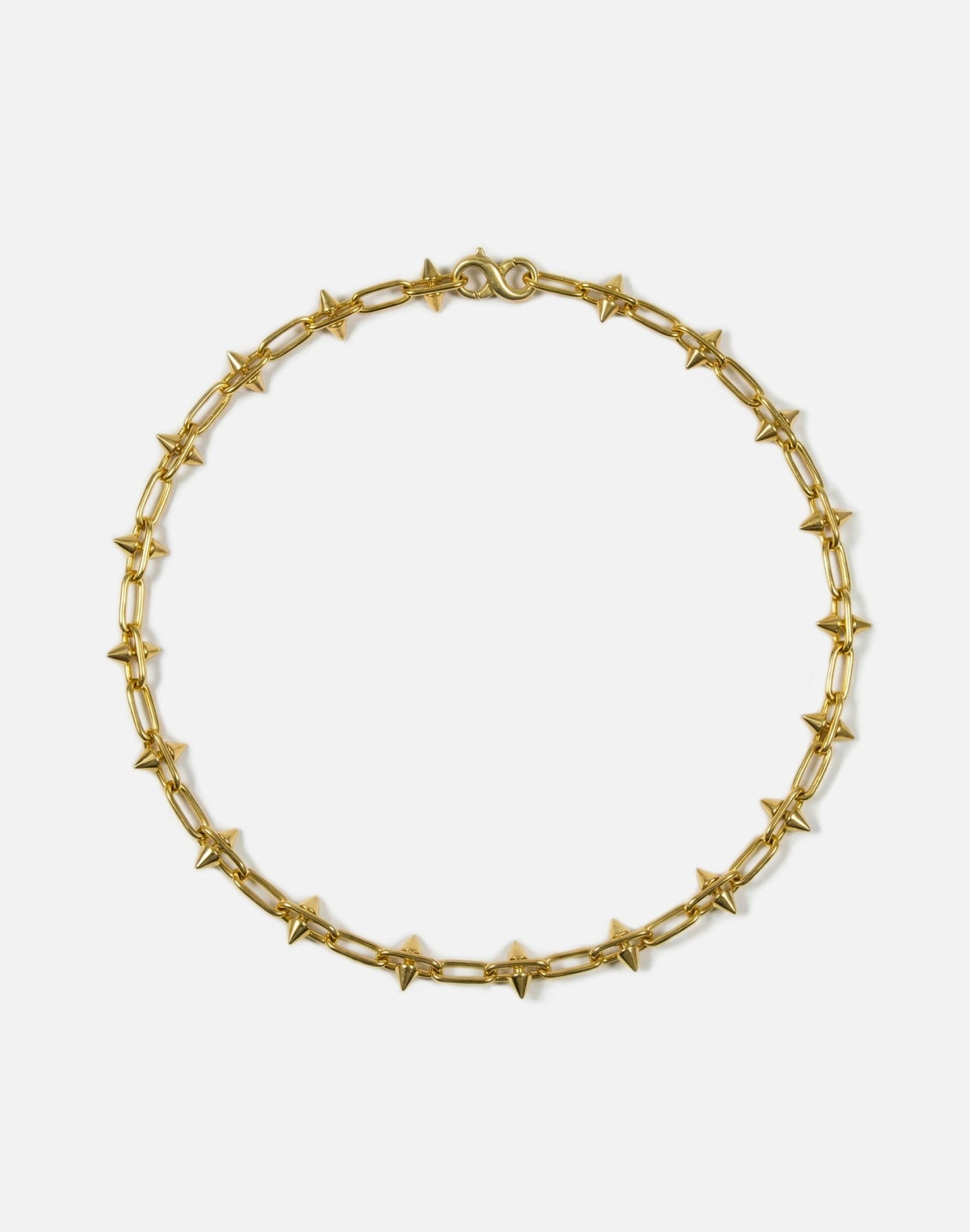 Small gold spikes necklace chain closed with a nice 8 infinity clasp.