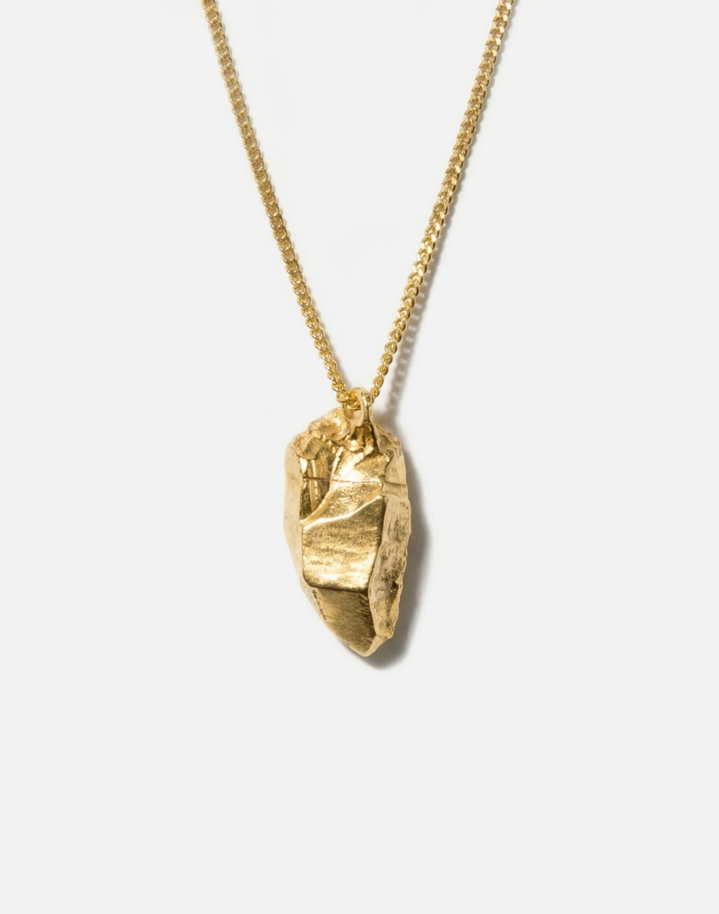 Pendentif sculptural doré inspiré des formations de cristal de roche brut.